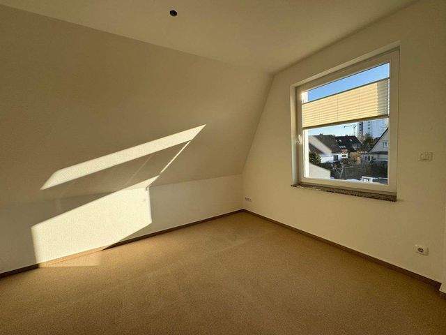 Das große Schlafzimmer sorgt mit seiner ruhigen Lage und den hellen Farben für eine angenehme Atmosphäre und hat ebenfalls einen Zugang zur Dachterrasse. Zwei weitere Zimmer können flexibel als Kinder-, Gäste- oder Arbeitszimmer genutzt werden. In der Wohnung sind elektrische Rollläden installiert, die zusätzlichen Komfort und Sonnenschutz bieten.